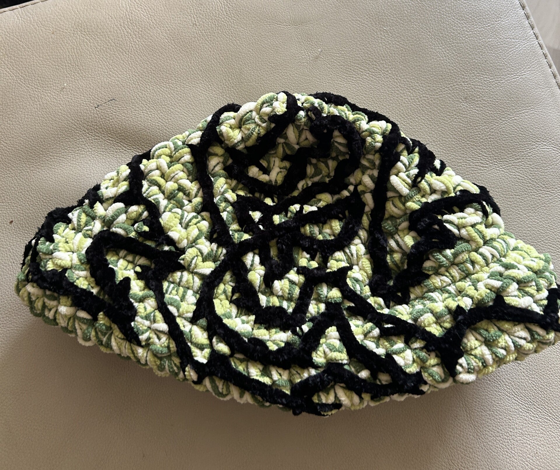 Realised combining different materials; from chenille to baby suri silk to wool yarn, these hats hold my artistic essence.